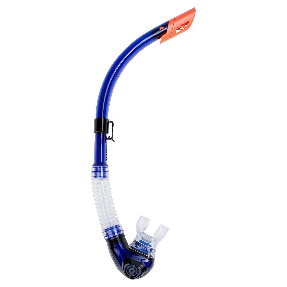 Трубка изогнутой (анатомической) формы. Имеется верхняя насадка от захлестывания волной и нижний дренажный клапан. Особенности: - регулируемое крепление - материал: пластик, загубник изготовлен из мягкого гипоаллергенного силикона