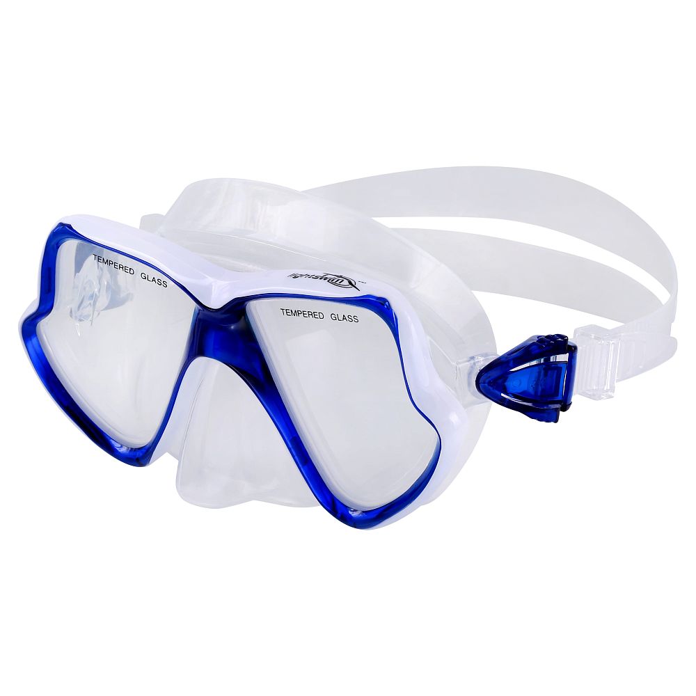 Двухстекольная маска, обтюратор выполнен из гипоаллергенного прозрачного или черного силикона.