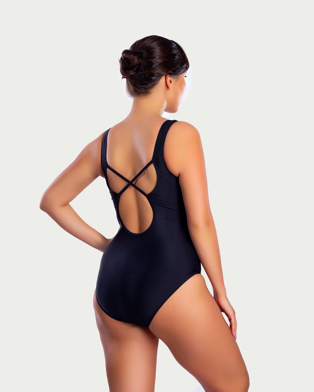 Широкие и надежные лямки купальника в сочетании со спинкой, выполненной в виде перехлеста двух тонких элегантных полосок, не спадут с плеч даже при самой интенсивной тренировке.