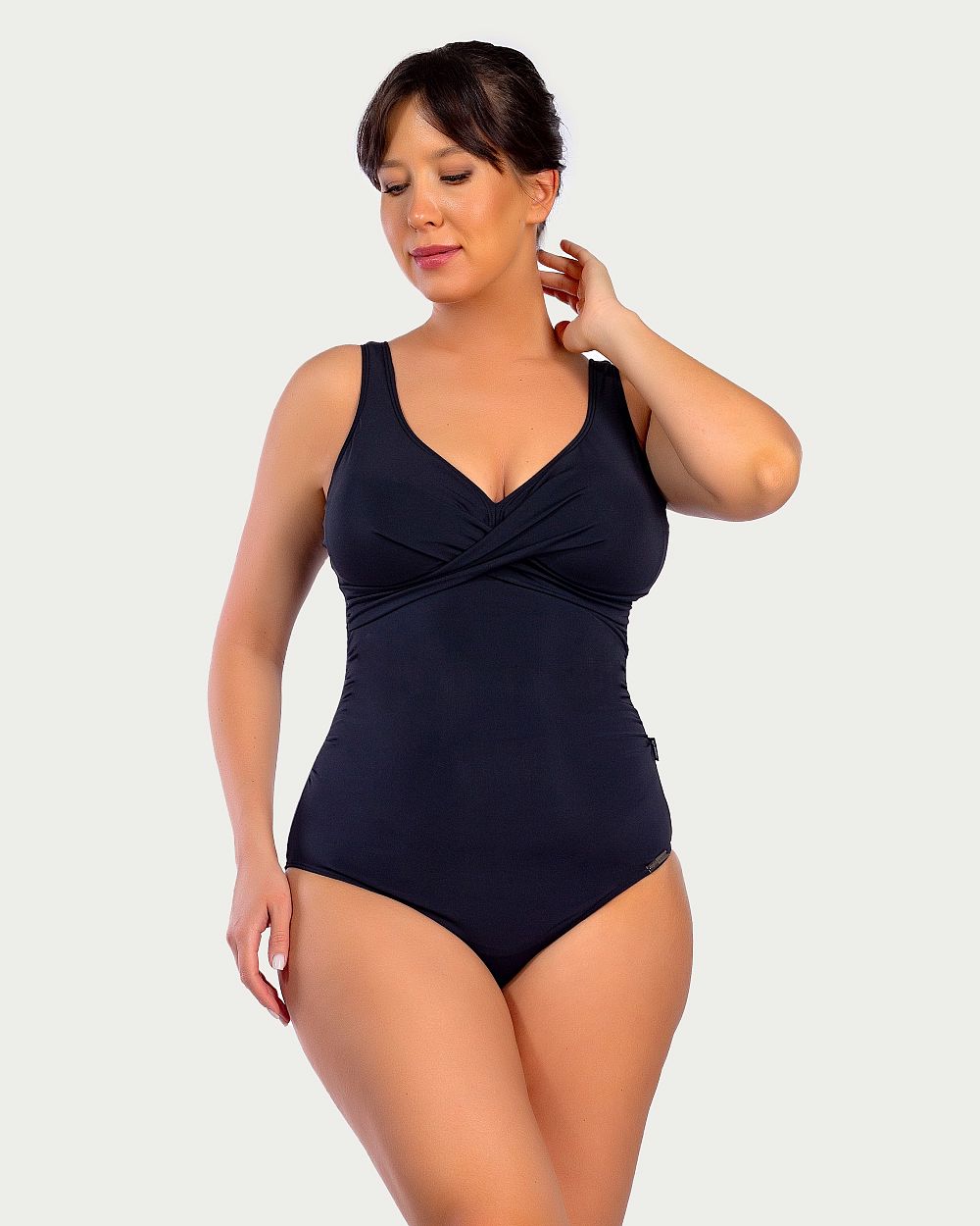 Аккуратный перехлест ткани на груди придает особую элегантность и шарм этому купальнику.