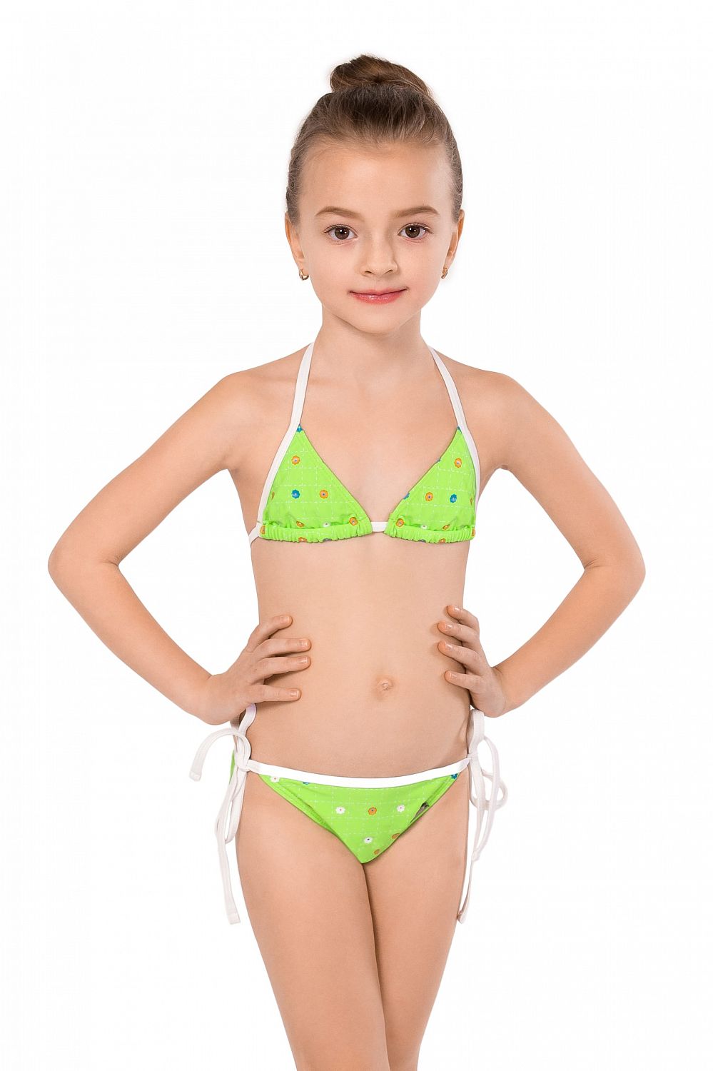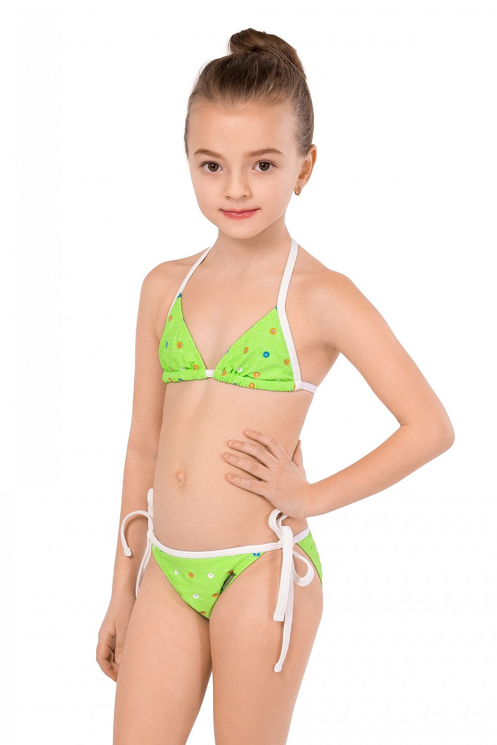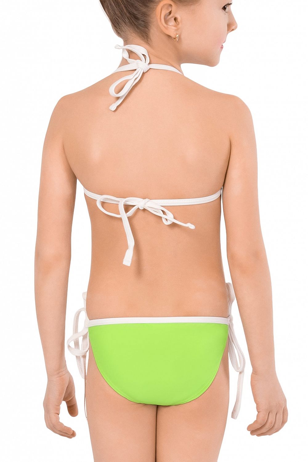 Купальник детский раздельный LS 22-12, выполнен из однотонных материалов.Верх купальника выполнен в виде треугольников на завязках сзади и на шее, плавки на завязках по бокам, вырез бедра средний.