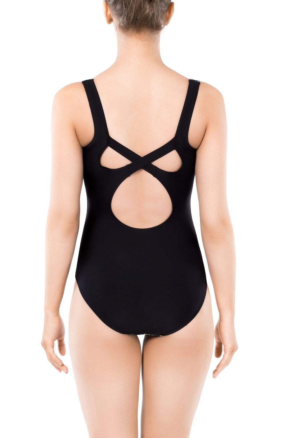 Широкие и надежные лямки купальника в сочетании со спинкой, выполненной в виде перехлеста двух полосок, не спадут с плеч даже при самой интенсивной тренировке.