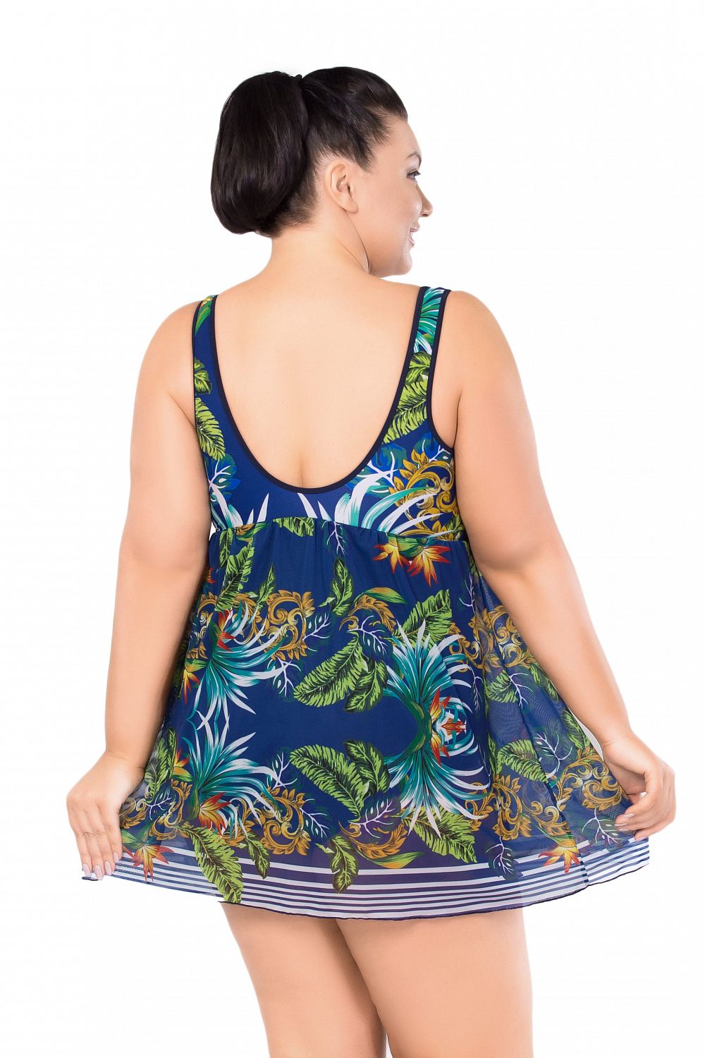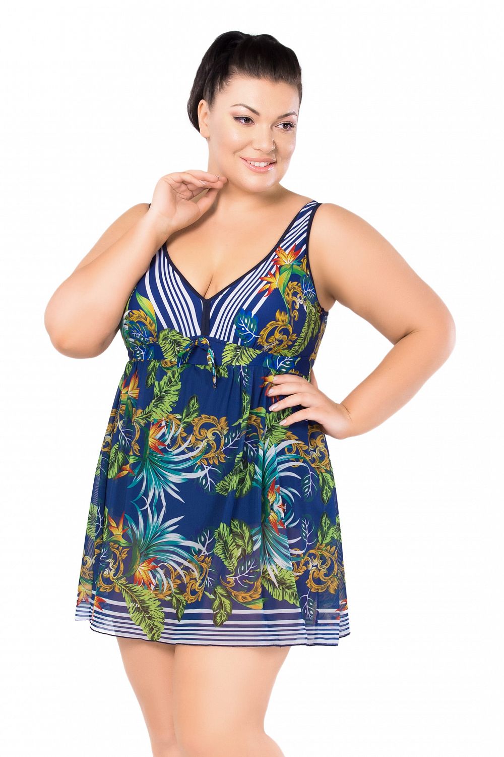 Купальник разработан специально для женщин с пышными формами, и успешно скрывает все возможные недостатки фигуры в области бёдер, живота и талии.