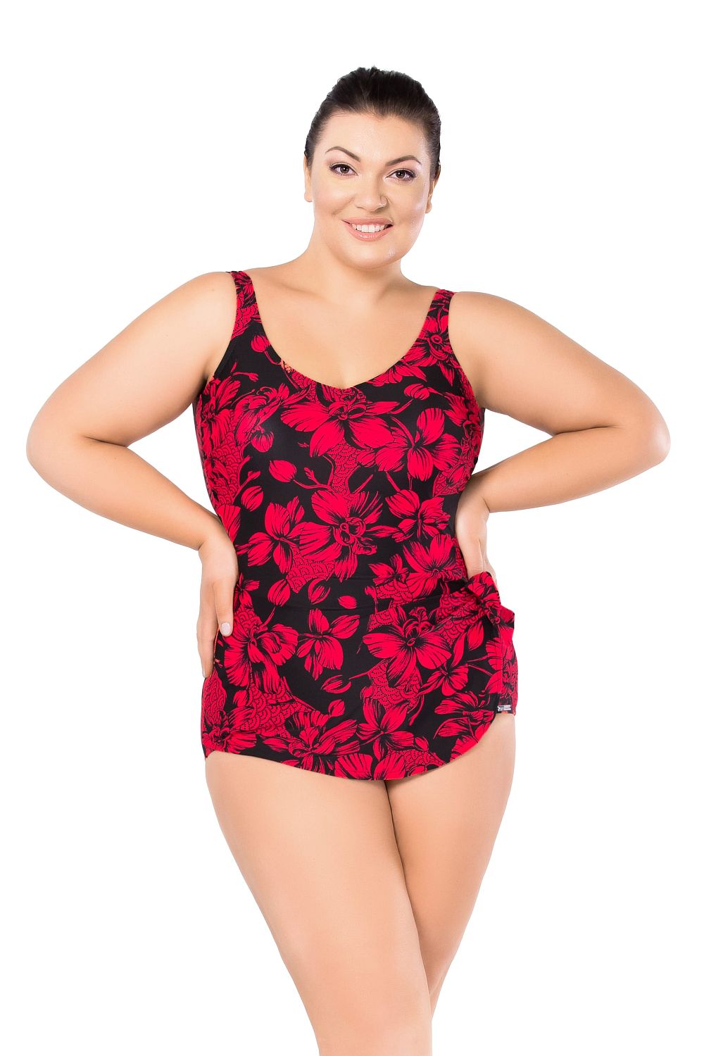Яркий дизайн, оригинальное решение зоны декольте и бикини, имитация юбочки, придают особую элегантность и шарм этому купальнику.