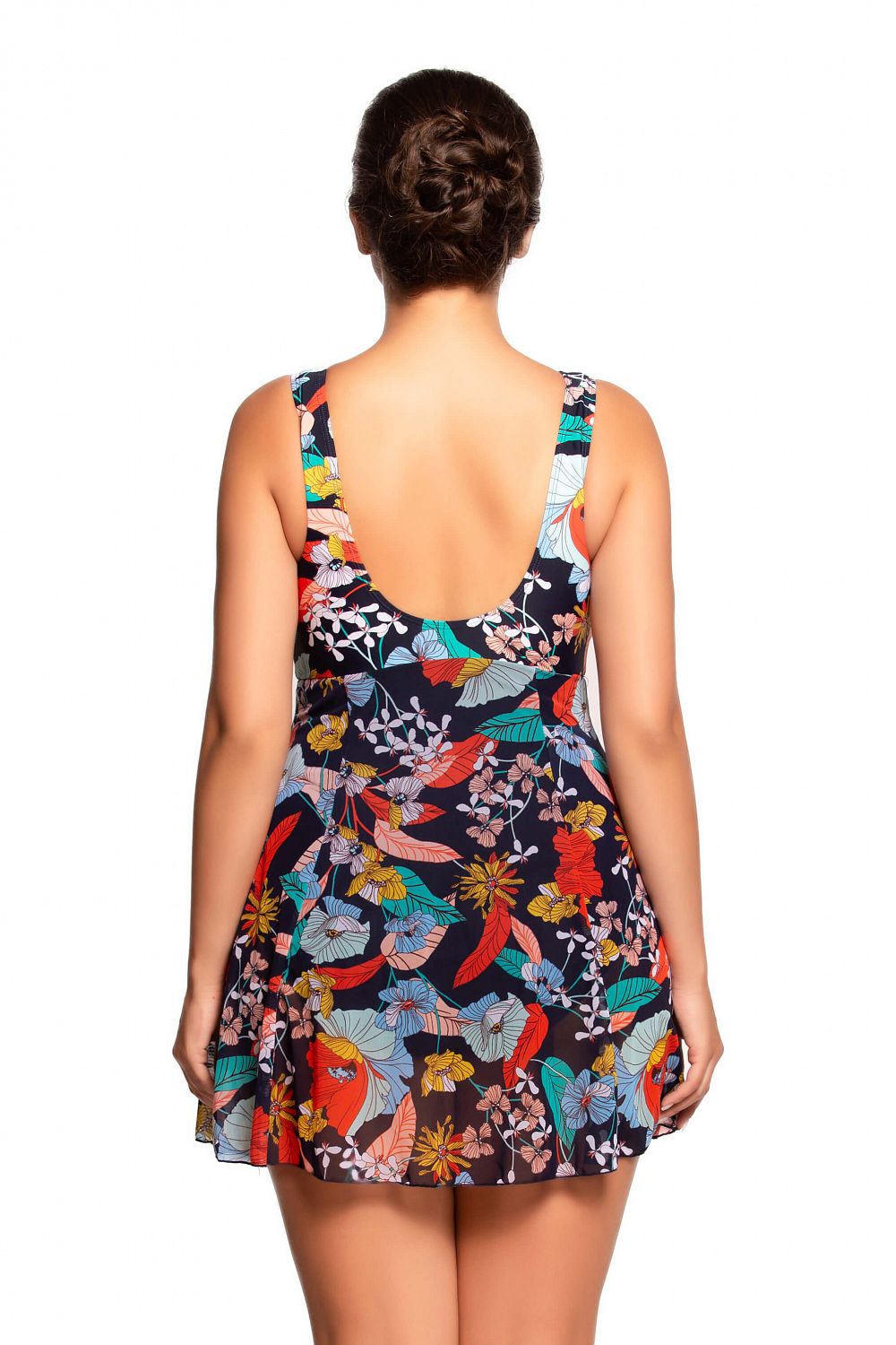 Сверху купальник имеет легкую юбку из сетки, которая превращает его в элегантное платье, и практически не прибавляет веса изделию.