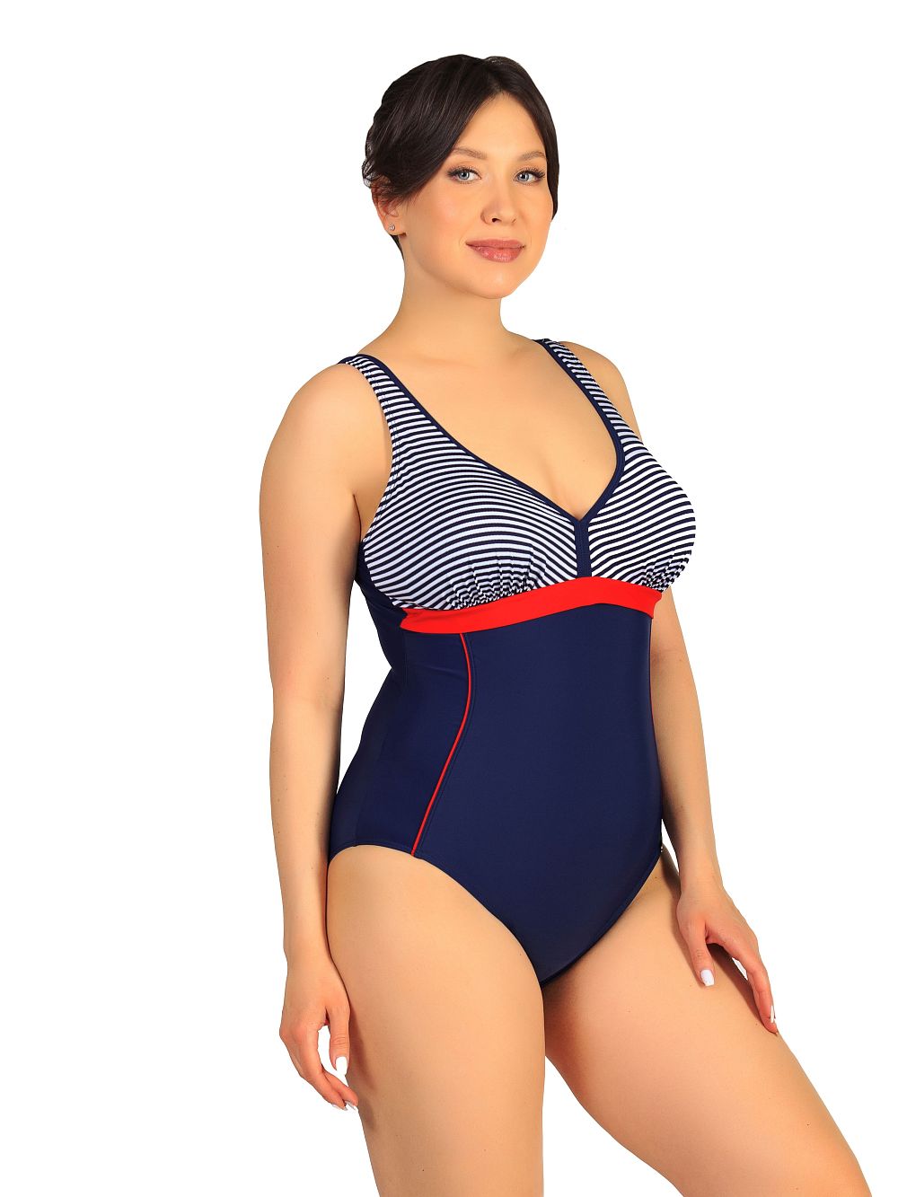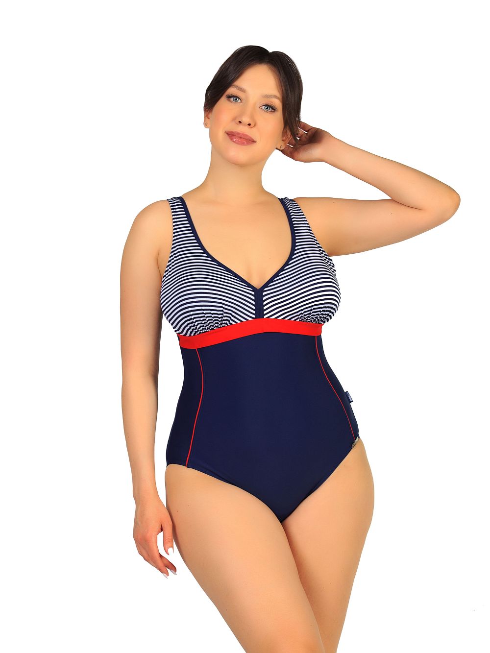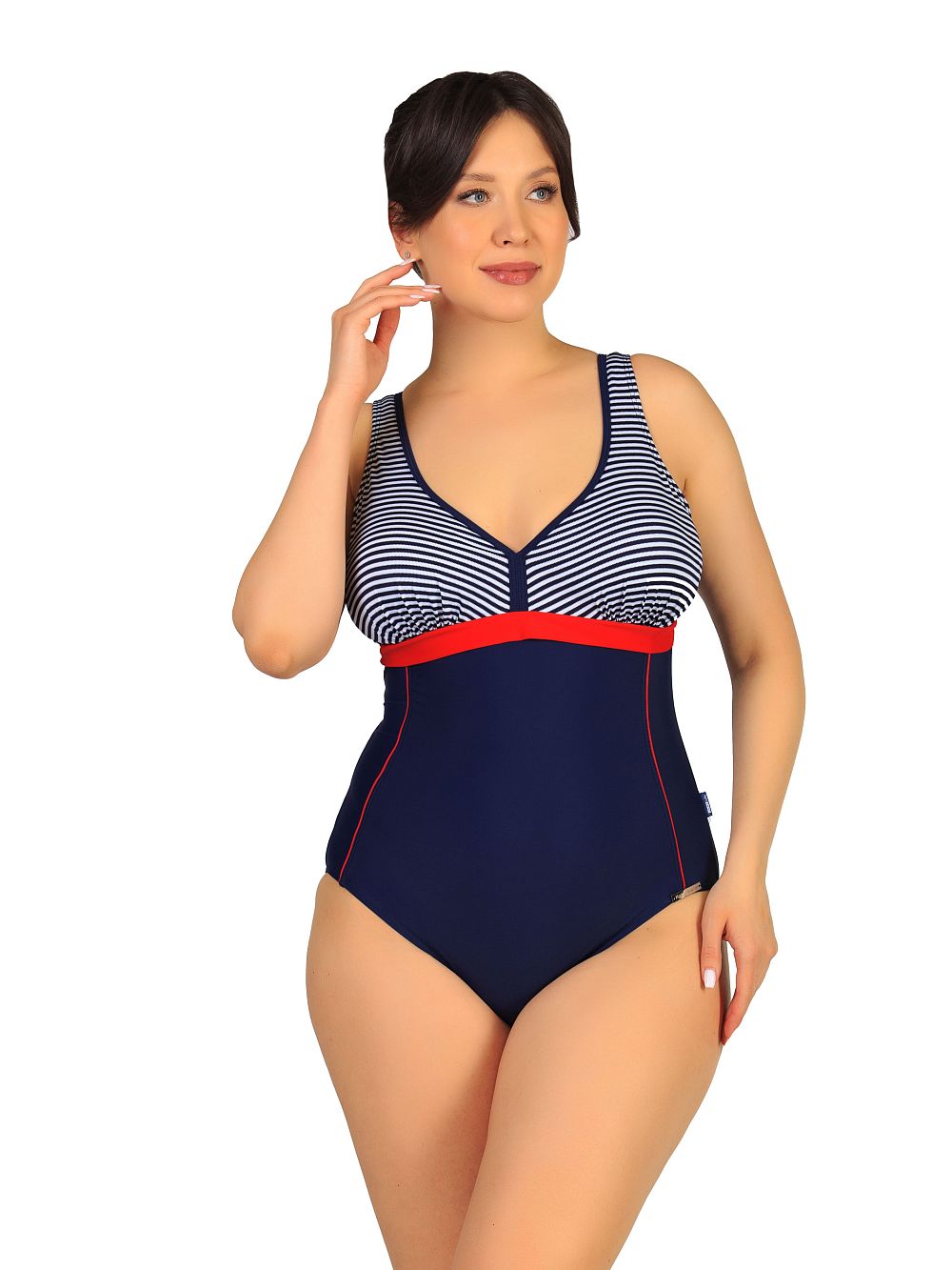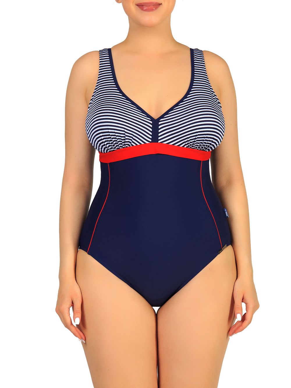 Оригинальный дизайн, выполненный в морском стиле, придает особую элегантность и шарм этому купальнику.