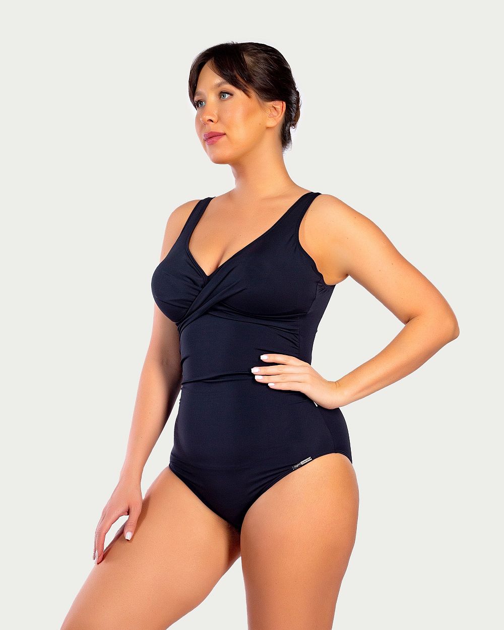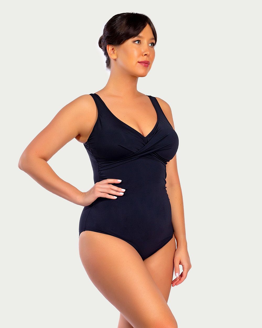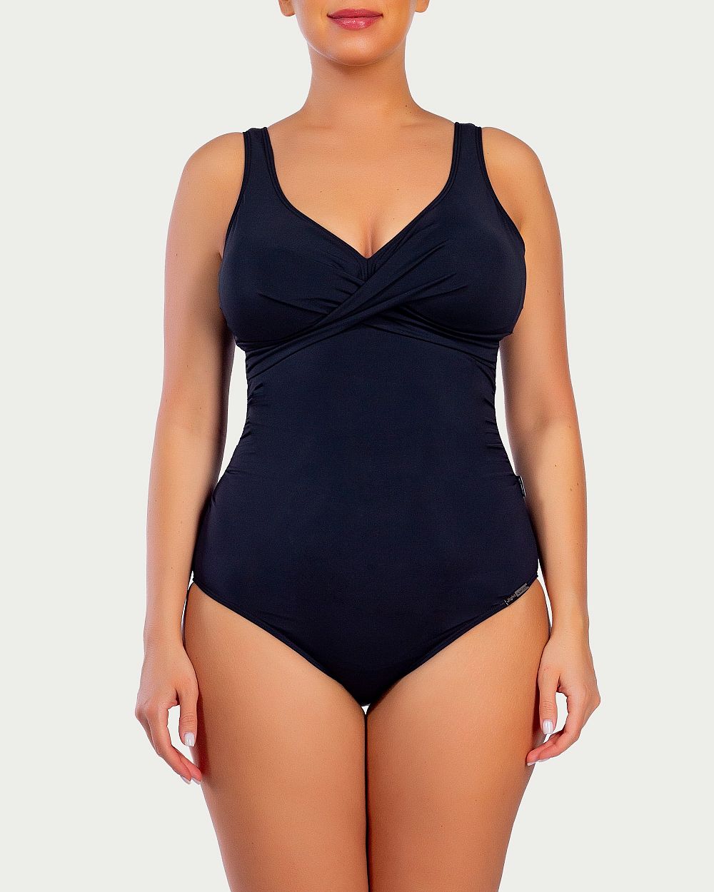Аккуратный перехлест ткани на груди придает особую элегантность и шарм этому купальнику.